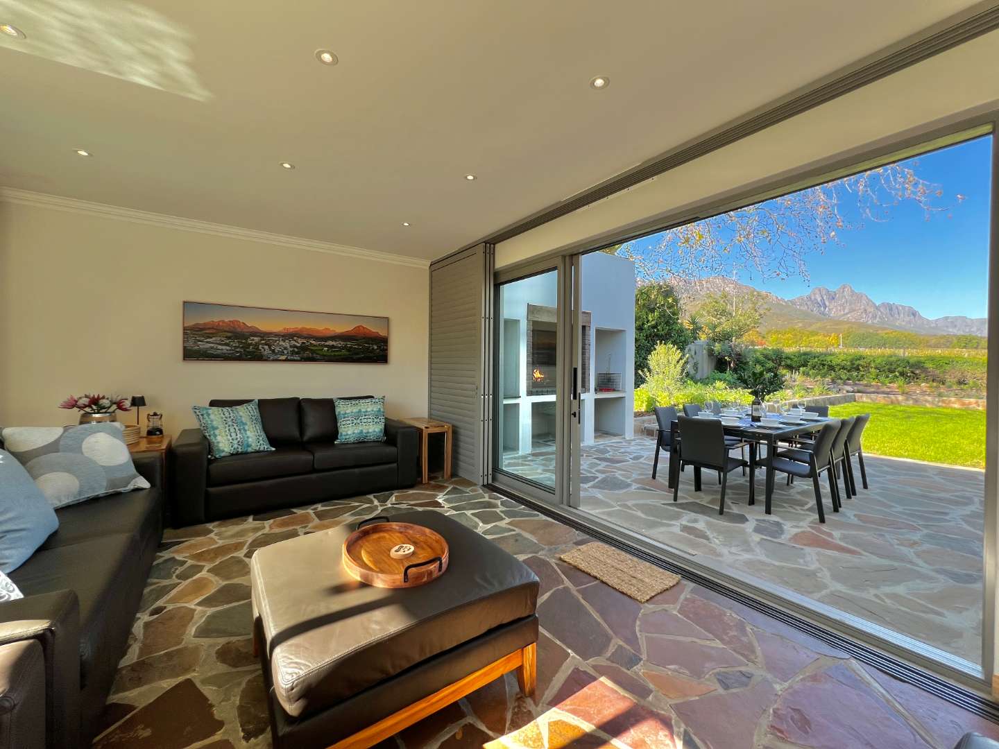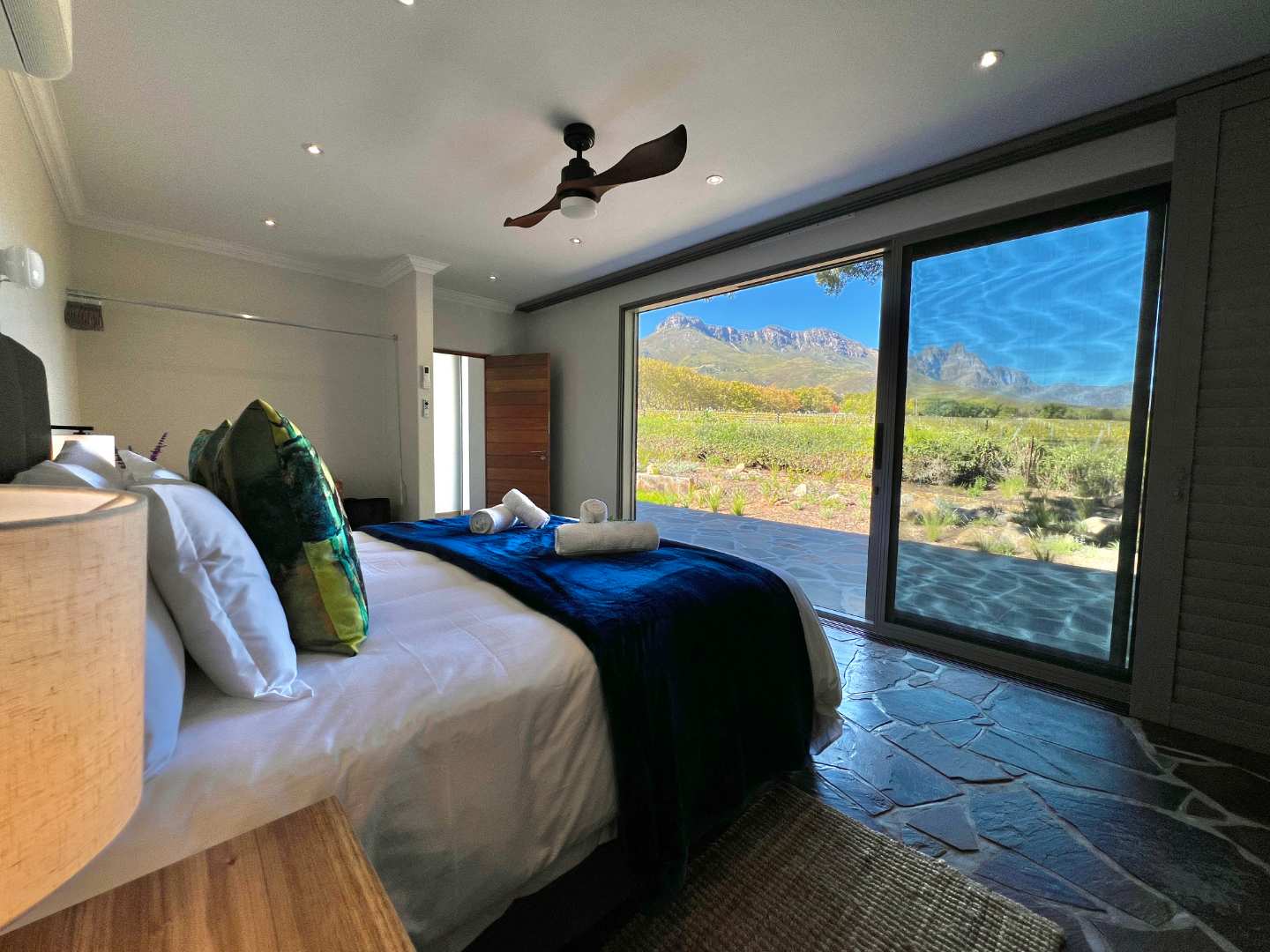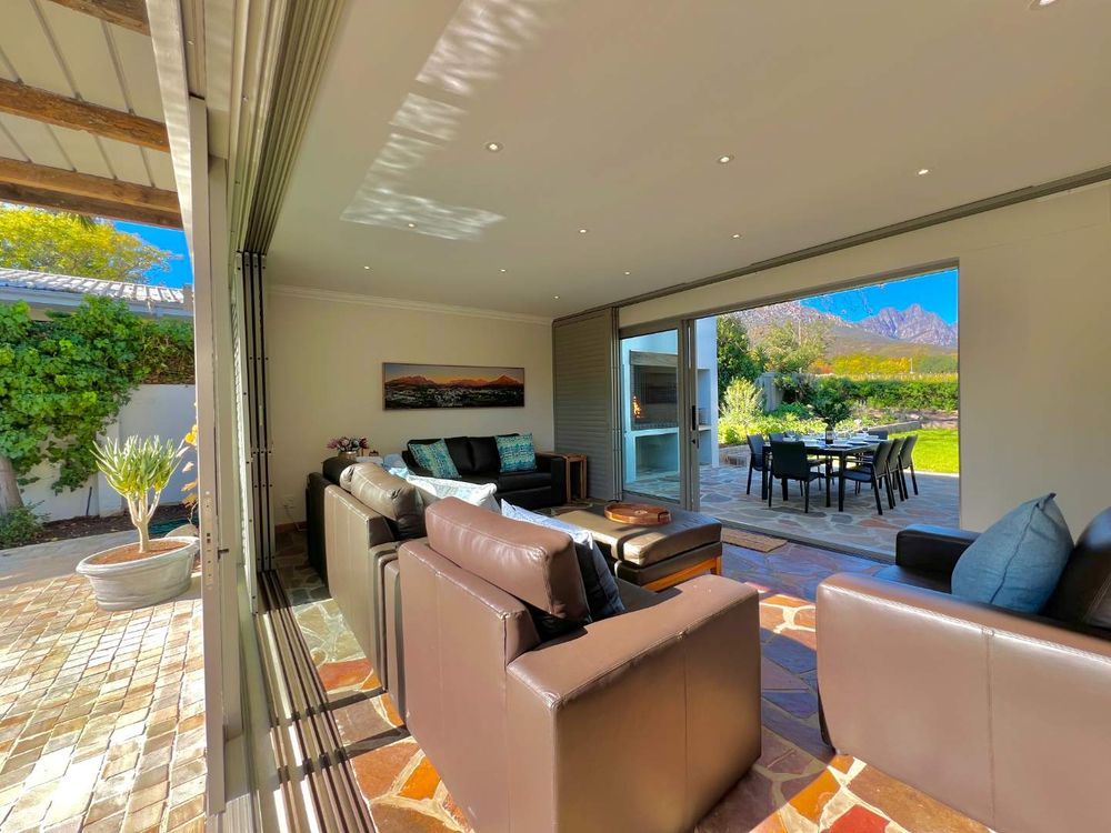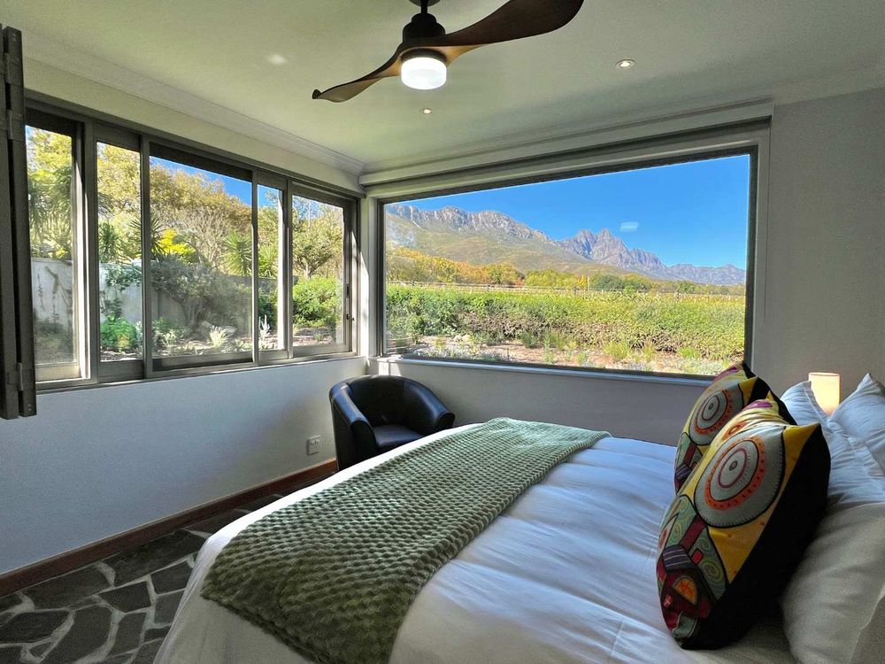 Bordering onto the Lanzerac wine estate this villa features breathtaking views onto the vineyards and mountains. Every detail at this home has been well thought out and planned to give our guests the very best experience....