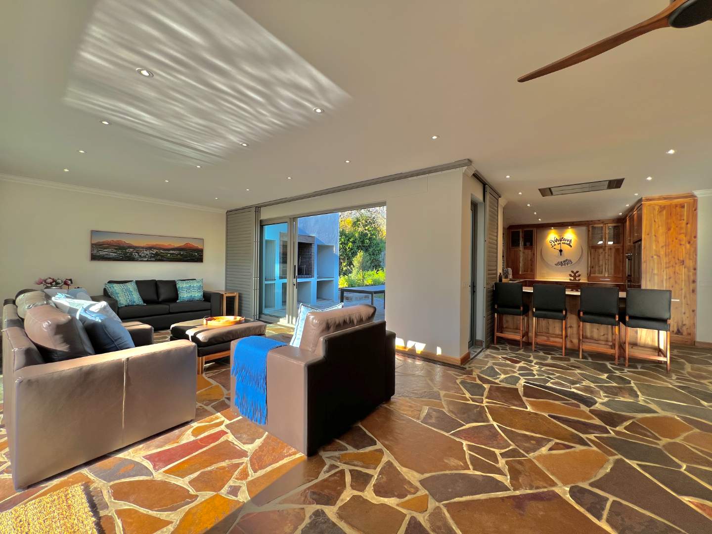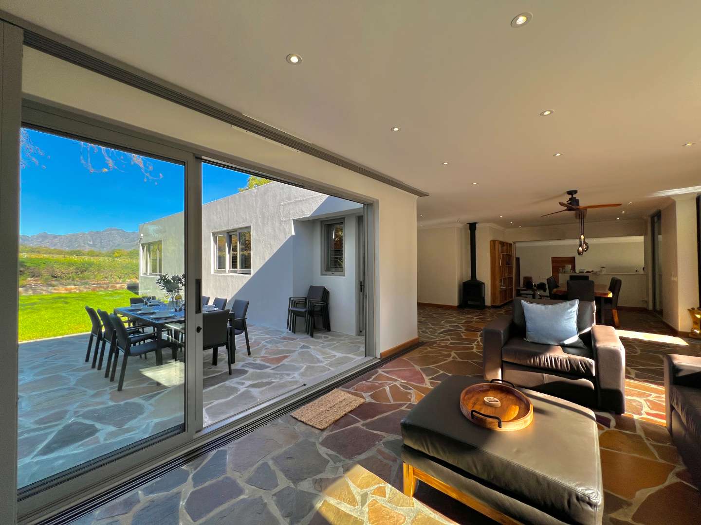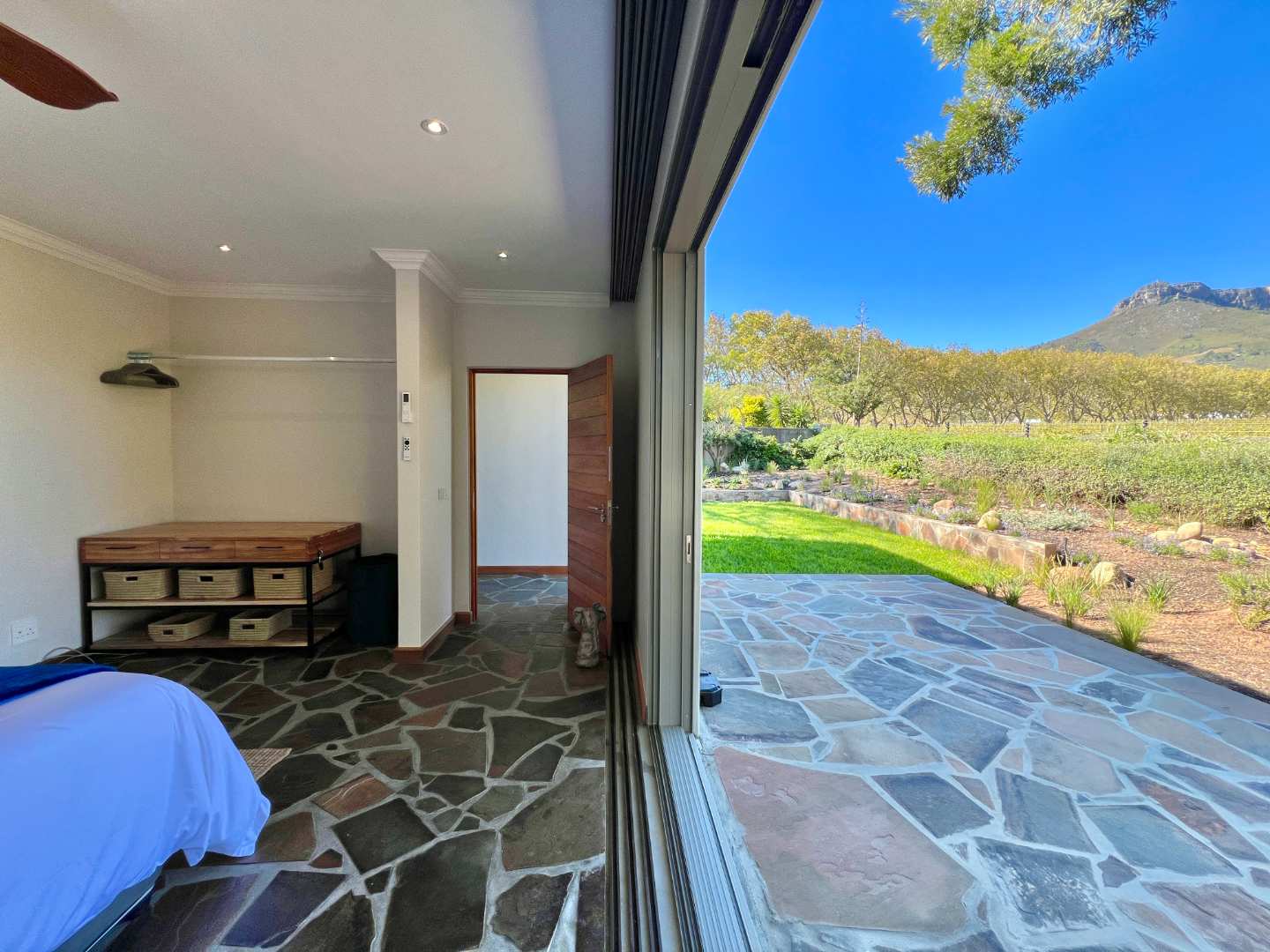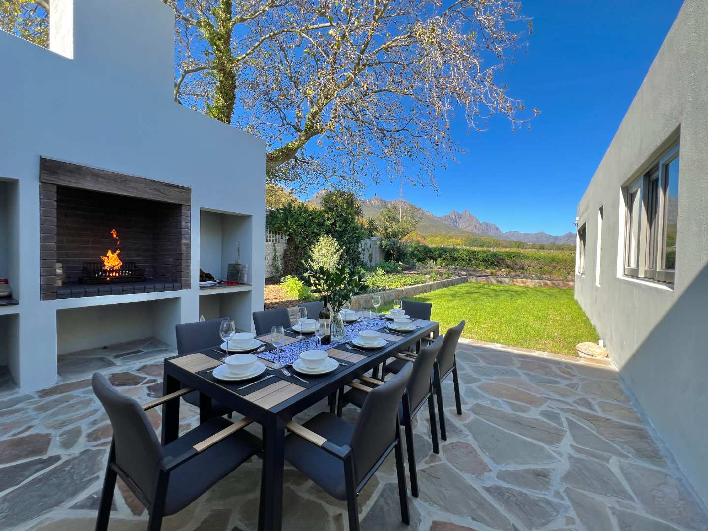 Bordering onto the Lanzerac wine estate this villa features breathtaking views onto the vineyards and mountains. Every detail at this home has been well thought out and planned to give our guests the very best experience....