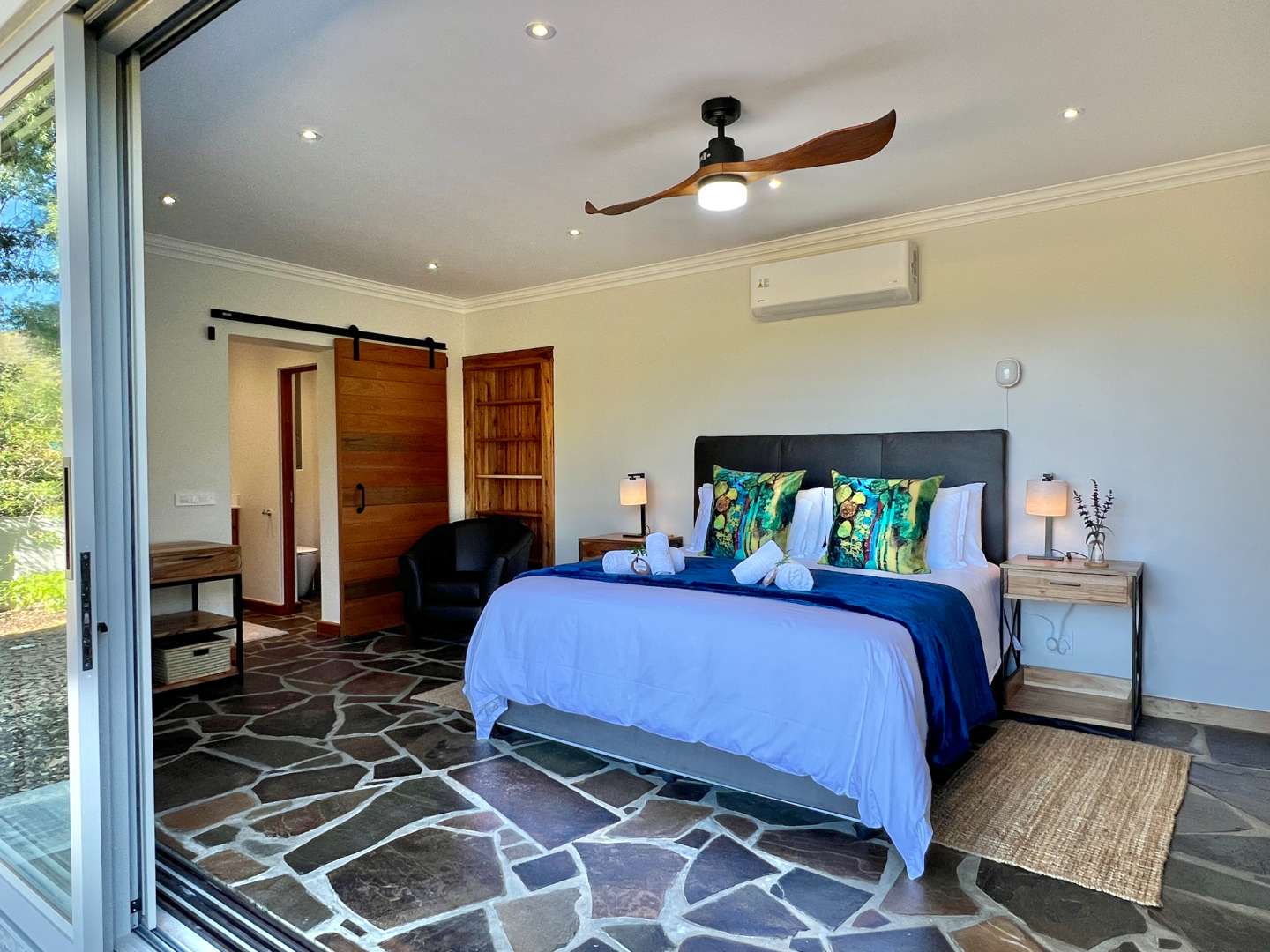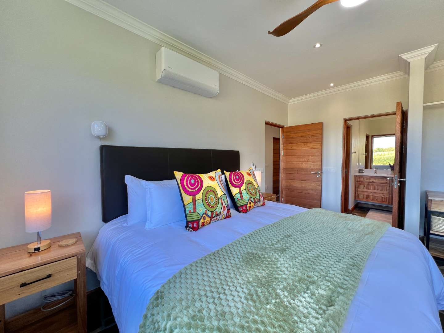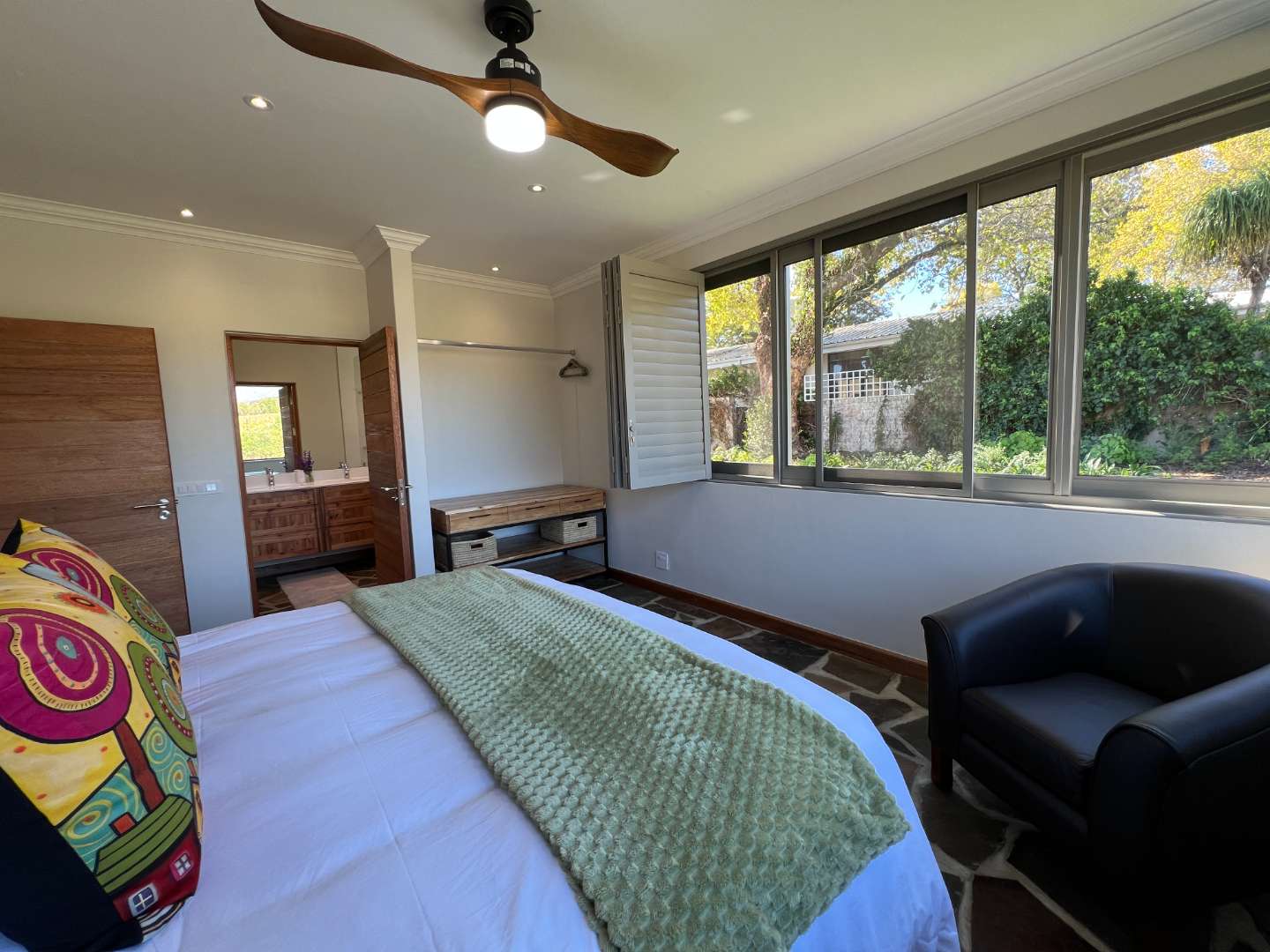 The home boasts 4 luxurious bedrooms, two with almost uninterrupted vineyard and mountain views to wake up to. You would not want to leave your room after watching the sun coming up in this magnificent setting...