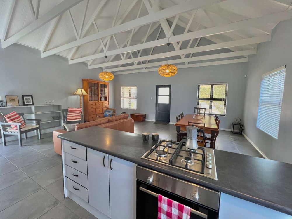 The home feels, cosy, although there is no shortage of space inside. It comfortably houses 5 guests and even has a private splash pool and braai area.