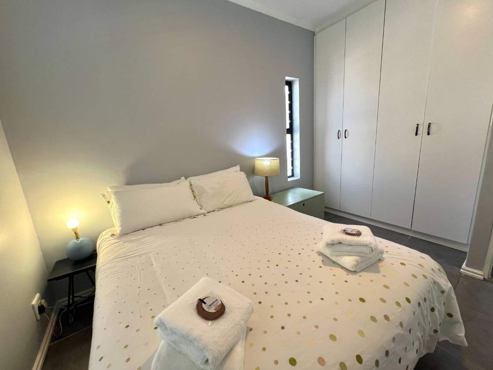 Check-in is available between 15:00 and 17:00, with an additional fee applicable for each hour after 17:00 in the case of late arrivals. The property has got a single garage that can fit a single smaller car such as a hatchback or a sedan, but bakkies and larger SUVS will need to make use of street side parking. An exit cleaning fee applies to all stays, regardless of duration. For longer stays, interim cleaning and linen changes are available at an additional cost and are mandatory every ten days.