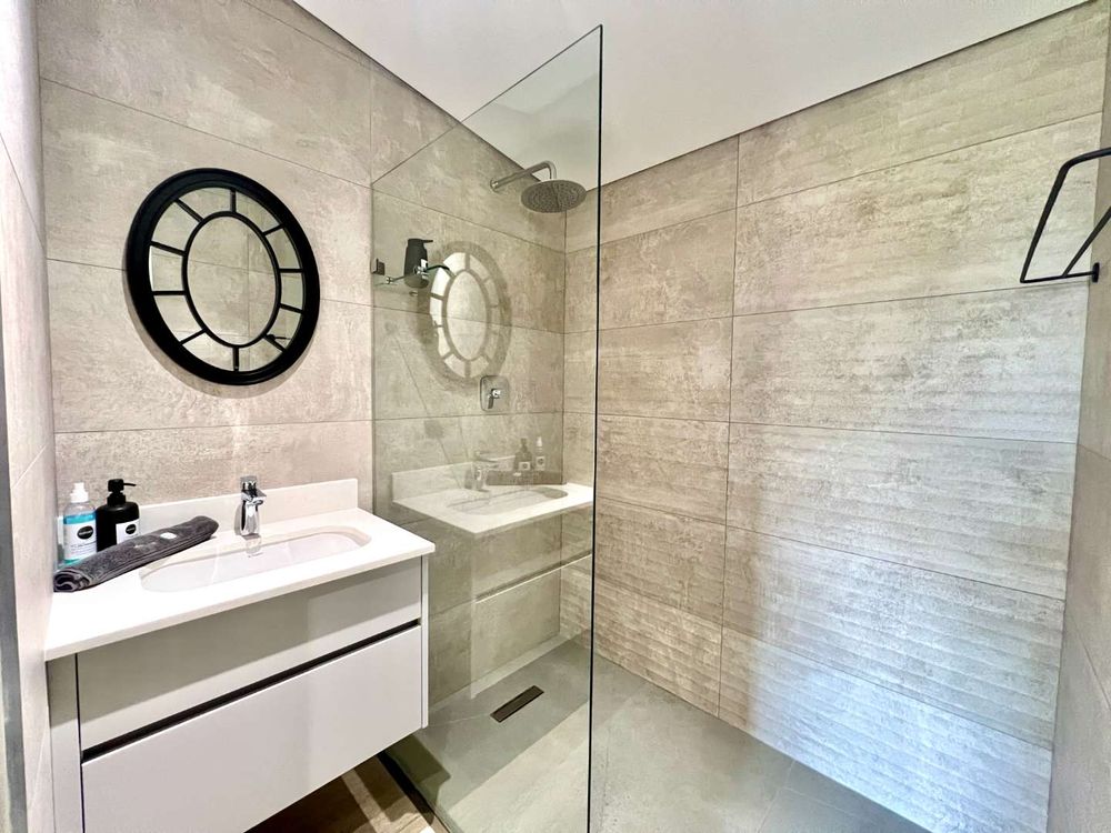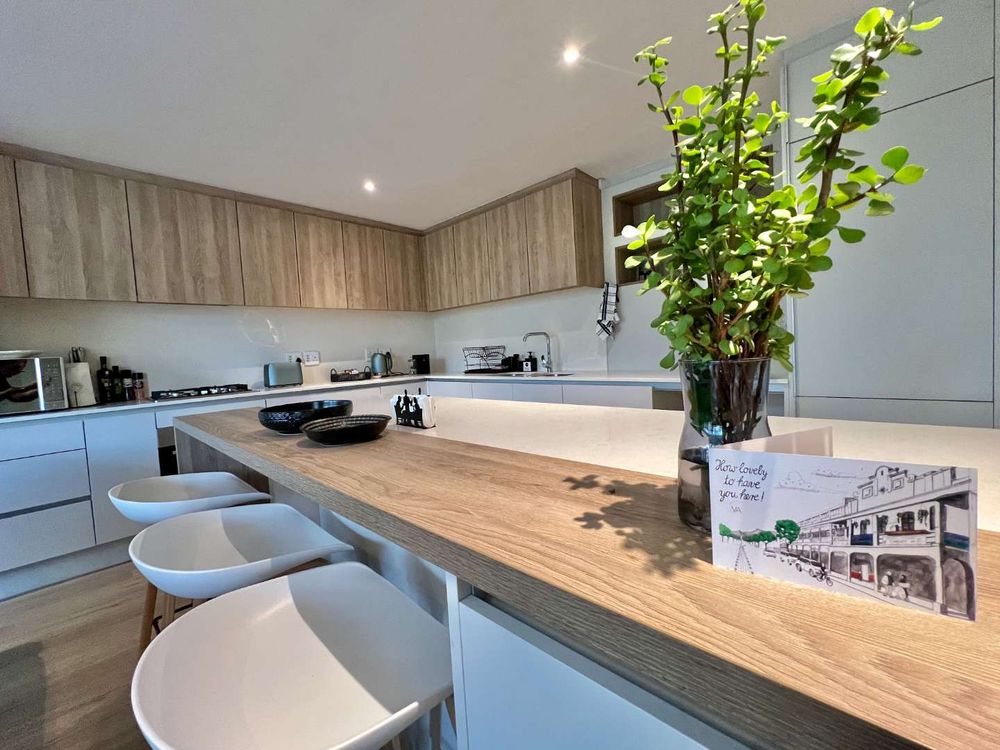 Downstairs is a fully fitted kitchen with backup power, gas hob, dishwasher and washing machine with tumble dryer function. Upstairs you will find two bedrooms, one with a king size bed and the other with a queen size bed. Both have en-suite bathrooms. Both bedrooms and the downstairs areas are air conditioned.
