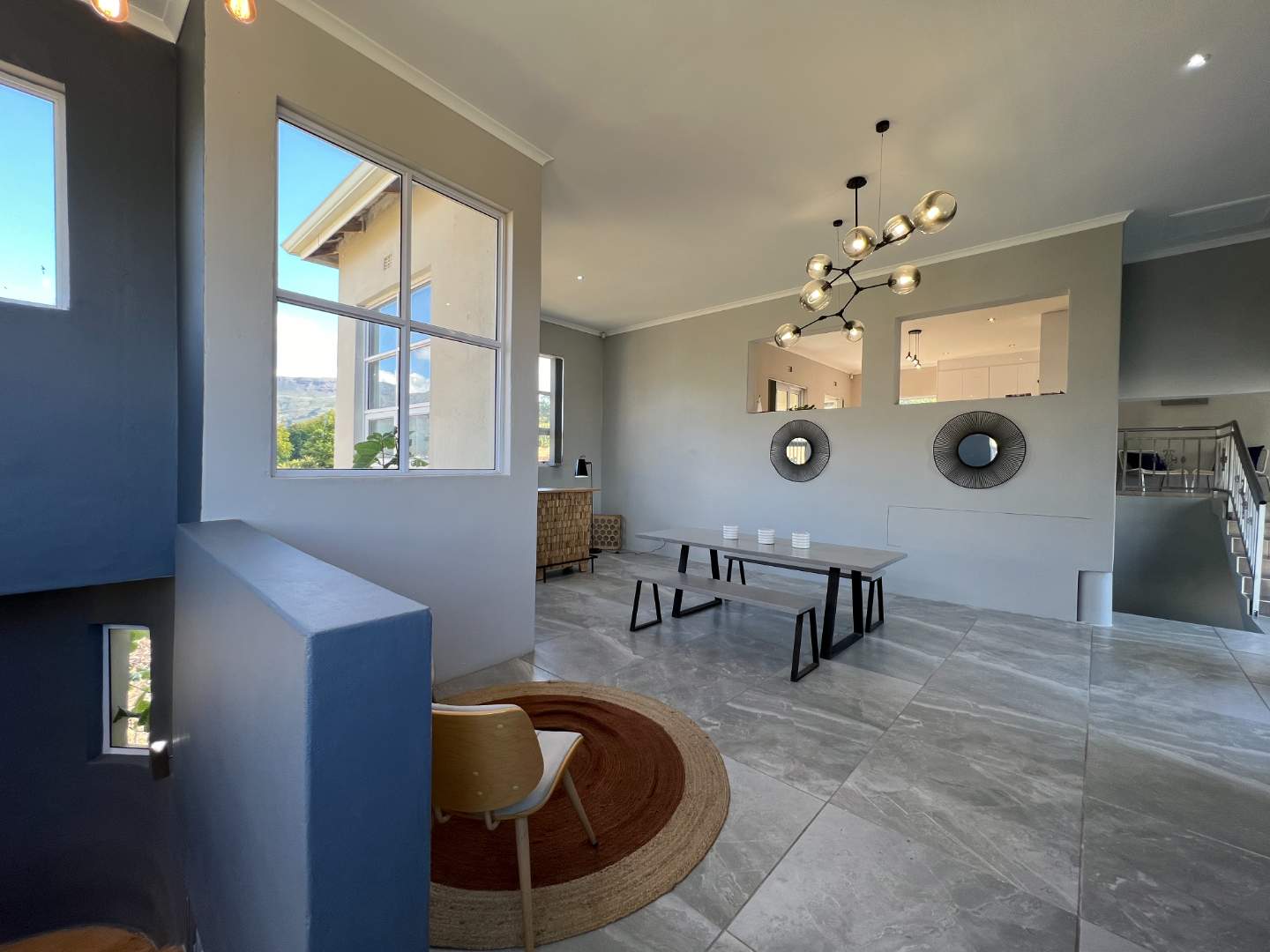 The main, multi level home consists of large open living areas and kitchen, plus 4 bedrooms and 2,5 bathrooms. The flat is downstairs and has its own entrance. The property has an extra large 2 car garage.