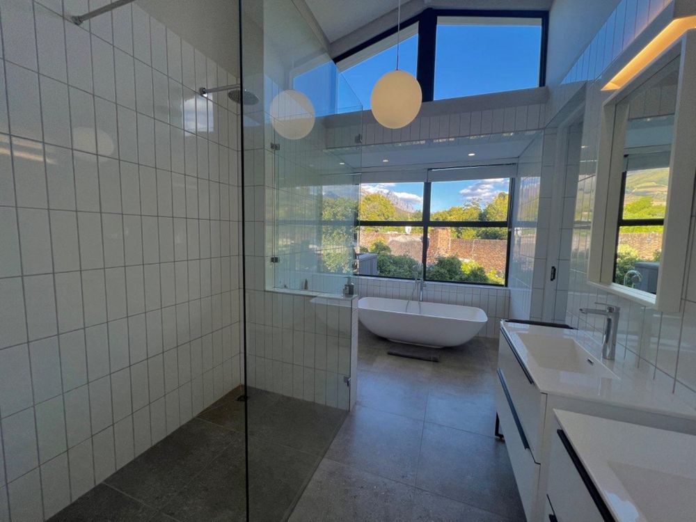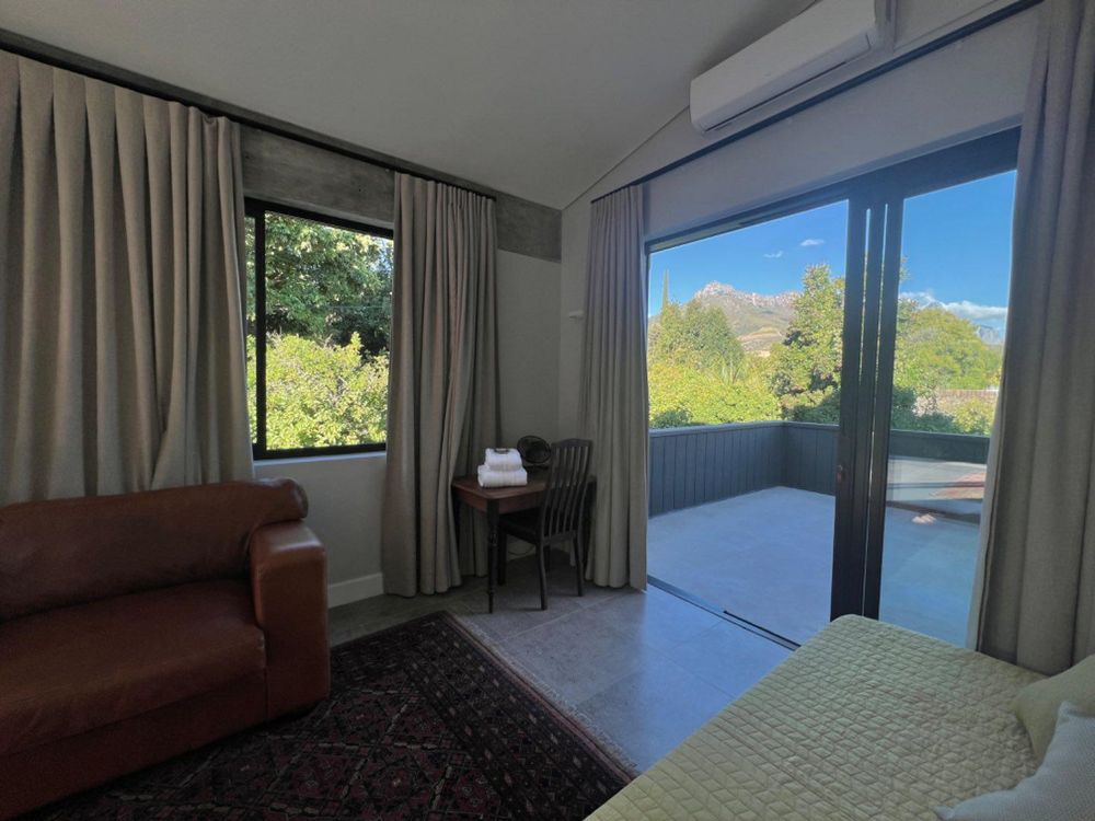 One to four bedrooms, each with a private bathroom (priced according to the amount of bedrooms you require and book).The main bedroom suite has a king size bed, dressing room, two balconies with views and a full, spacious en-suite bathroom with stunning views over Stellenbosch Mountain and Botmaskop.