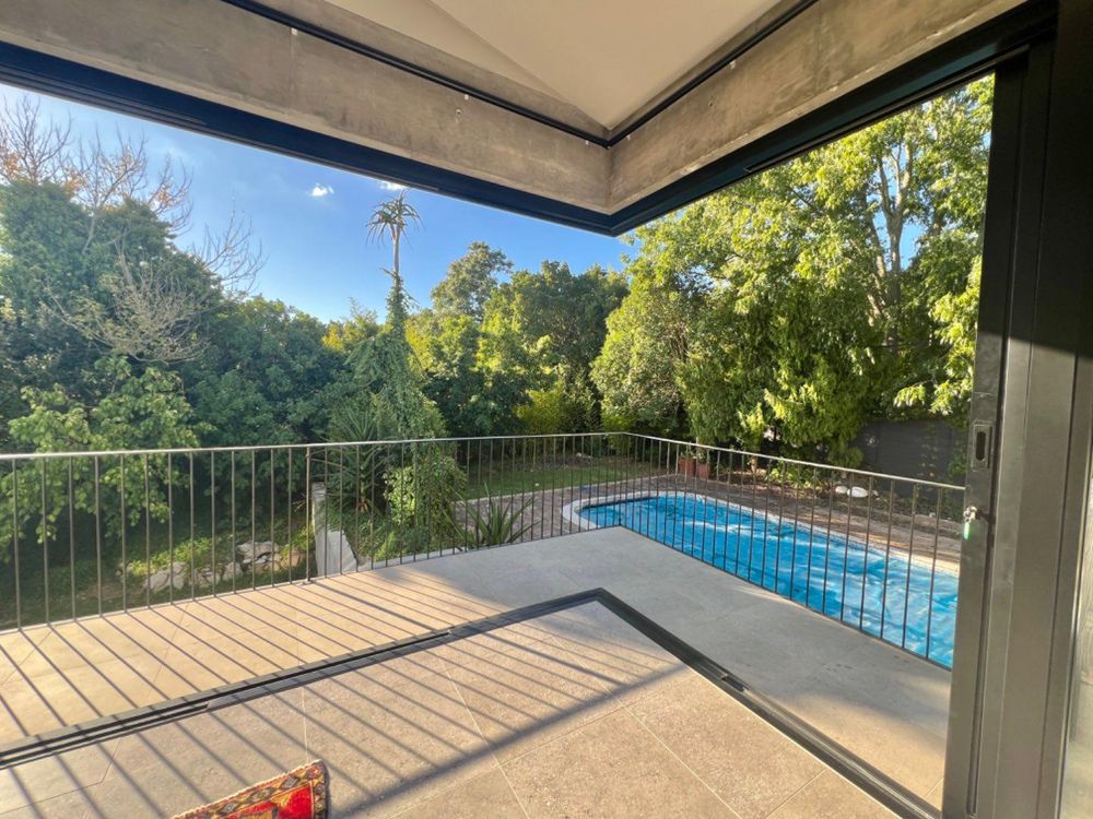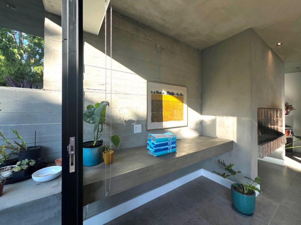 The living areas are spacious, and there is a large, smart television and indoor braai area, with concertina doors towards the outside, to create a seamless flow with the outdoor patio. A large pool rounds off the picture in the back garden during summer months.